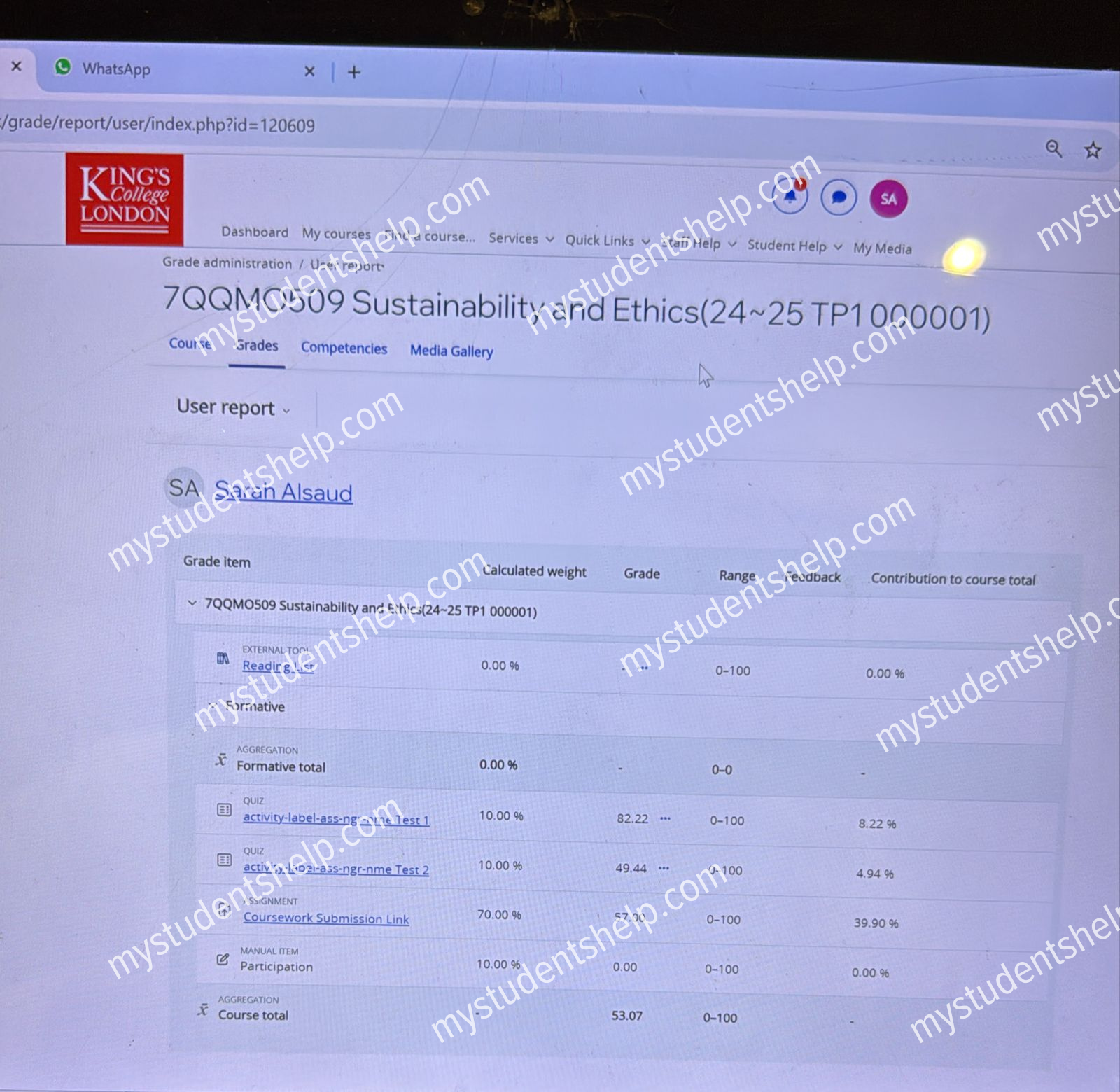 King’s College London has high academic standards and strict professors, and I was stuck in the Sustainability and Ethics course until I found My Student Help. The subject experts proved very helpful as I scored a B+. Thank you!