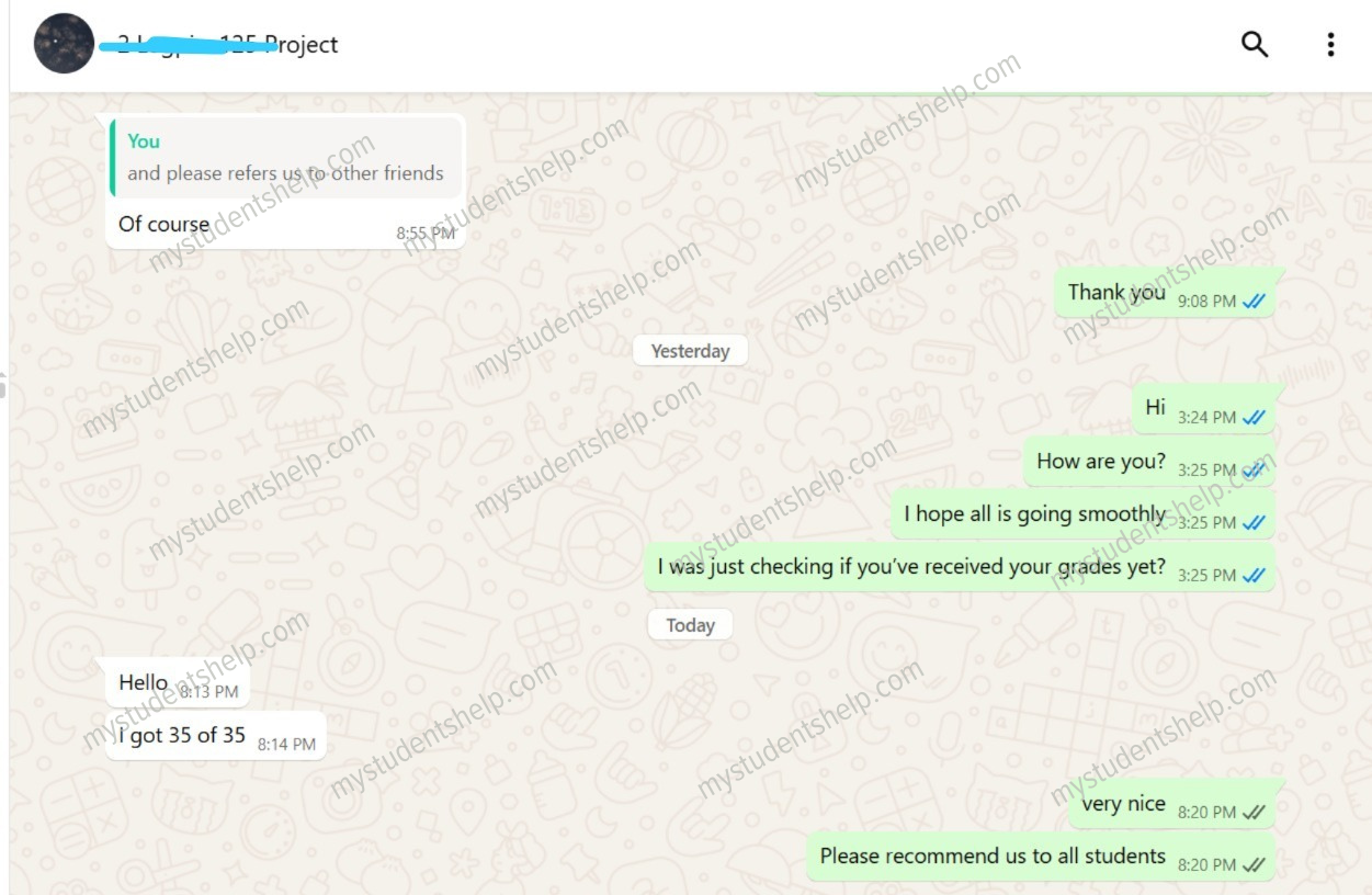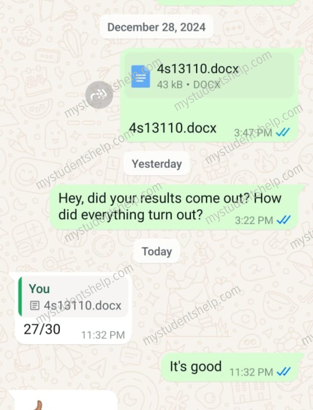 I had to assist my team in planning a grand-level university event, so I sought academic help. My friend referred me to My Student Help, and I had a fantastic experience. I ordered two assignments and scored A and A+ grades. Highly recommended!